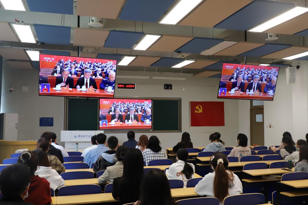 10月16日上午,公共管理公司党委组织全公司党员师生观看了中国共产党第二十次全国代表大会开幕会直播。永利集团3044am班子成员及全体行政支部和员工代表于公司二办301线下集中观看本次直播。全体2022级新生分别于第三教学楼A202、A203、A204和A208观看,员工第一第二党支部于第三教学楼A103观看,其余党支部和班级组织集体线上观看。