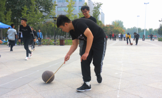 此次活动分为“砥砺前行”、 “反杀行动”、“百米突击”、“绝密情报”四个环节,2018级各班以班级为单位组队参赛。“砥砺前行”环节中,每队三人通过蛙跳、用木棍拨动篮球、背人跑的形式穿越层层障碍奔向终点;“反杀行动”需要选手做出与主持人指令相反的动作,考验了选手的反应能力;“百米突击”环节中,选手运球、骑自行车越过障碍物,2018级公共管理类四班所有选手配合默契,仅用31秒就抵达了终点;“绝密情报”考验了选手的团队合作能力,每队四人通过接力跑的方式完成“情报”的传递。在场同学热情高昂,积极为本班参赛队伍加油呐喊,最终2018级公共管理类四班获得一等奖。