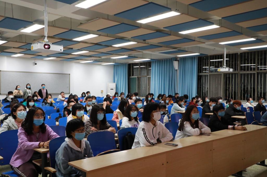 讲座开始前,同学们共同观看了爱国主义宣传教育片,进一步了解我国的国防事业。讲座开始,王柏林以自身参军经历为题,引出中国自建国以来国防工业的发展与进步。随后,王柏林同学结合自身经历,为同学们讲述了从军中实战化训练方式,并且分享了从军心得与体会,他谈到严格的军事训练磨练了自身意志,在“是”、“到”、“明白”三个回答中学会了忍耐与适应,在封闭化军事管理中学会了珍惜时光。之后,王柏林同学为大家科普了国防知识,使同学们更深入了解了歼20、运20等新型武器装备。讲座结尾,同学们共同观看了阅兵片段,阅兵仪式让同学们更加坚定了对我国国防事业的自信。