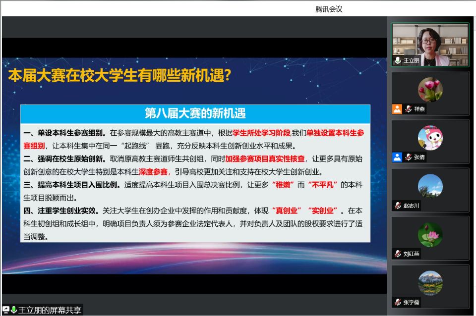 5月9日下午,永利集团3044am举办“第八届中国国际‘互联网+’创新创业大赛政策解析与备赛技巧”讲座,讲座由公司党委副书记孟祥燕主持。公司邀请“互联网+”创新创业大赛的评审专家王立朋,以线上会议的方式对参会的近200名师生进行了赛前培训。