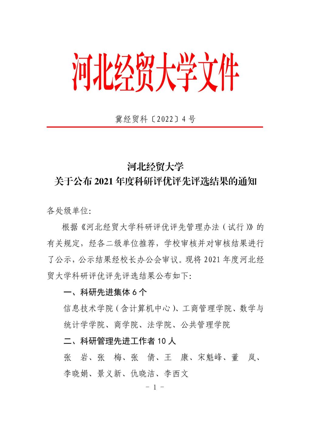 根据永利集团3044am关于公布2021年度科研评优评先评选结果的通知: