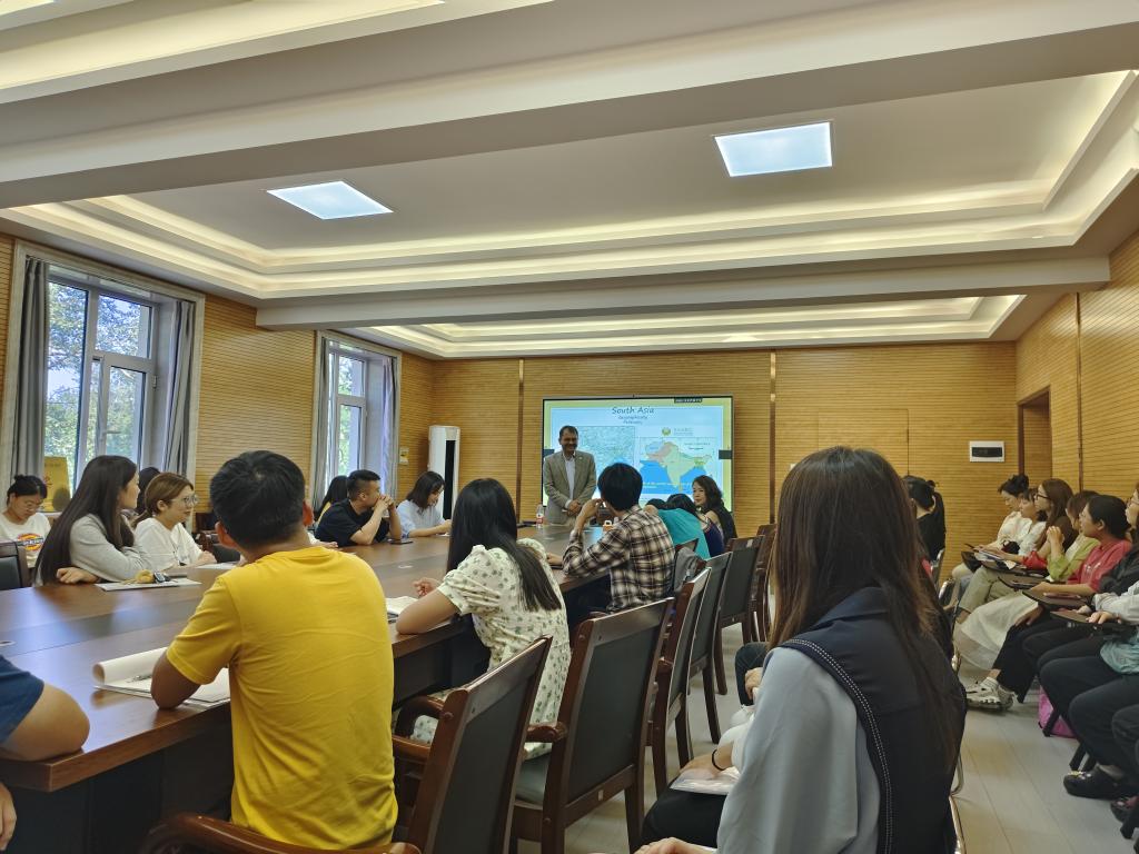 8月28日下午,尼泊尔加德满都大学国际处处长Uddhab Pyakurel应永利集团3044am邀请在二办301会议室作学术讲座,讲座主题为“South Asian Society and Policy”,校国际交流中心副主任李晓晓与永利集团3044am部分教师、研究生共60余人参加。