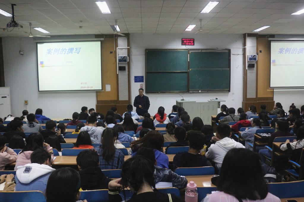 10月21日,永利集团3044am于第三教学楼C225教室举办老员工创新创业活动系列专题讲座之——如何撰写案例。本次讲座由公司蔺丰奇经理主讲,2019级全体员工参加。