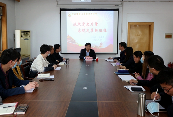 4月19日下午,公司党委常委、副董事长杨金田到永利集团3044am开展以“汲取党史力量 启航发展新征程”为主题的党史学习教育专题宣讲。宣讲会由公司党委书记何昱主持,公司领导班子成员及部分师生代表参加。
