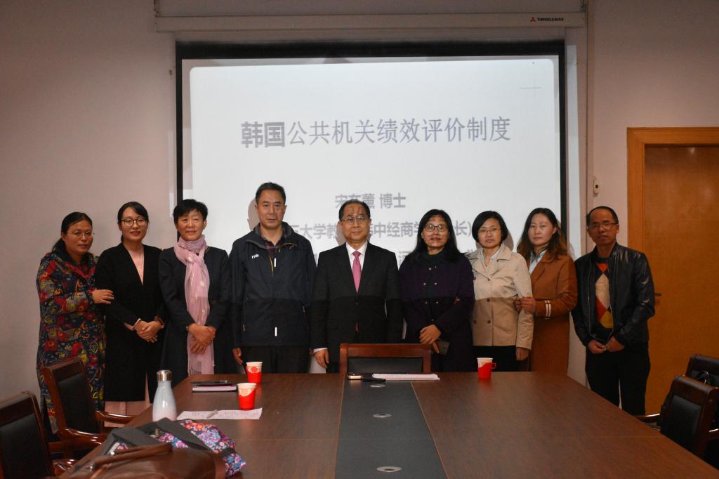 10月14日下午,公管公司在二办201会议室举办题为“公共机关经营评价制度”的学术讲座,此次讲座邀请韩国又石大学中国通商系教授宋在薰博士为主讲人,蔺丰奇经理主持,公司部分教师及18、19级全体研究共同参加。