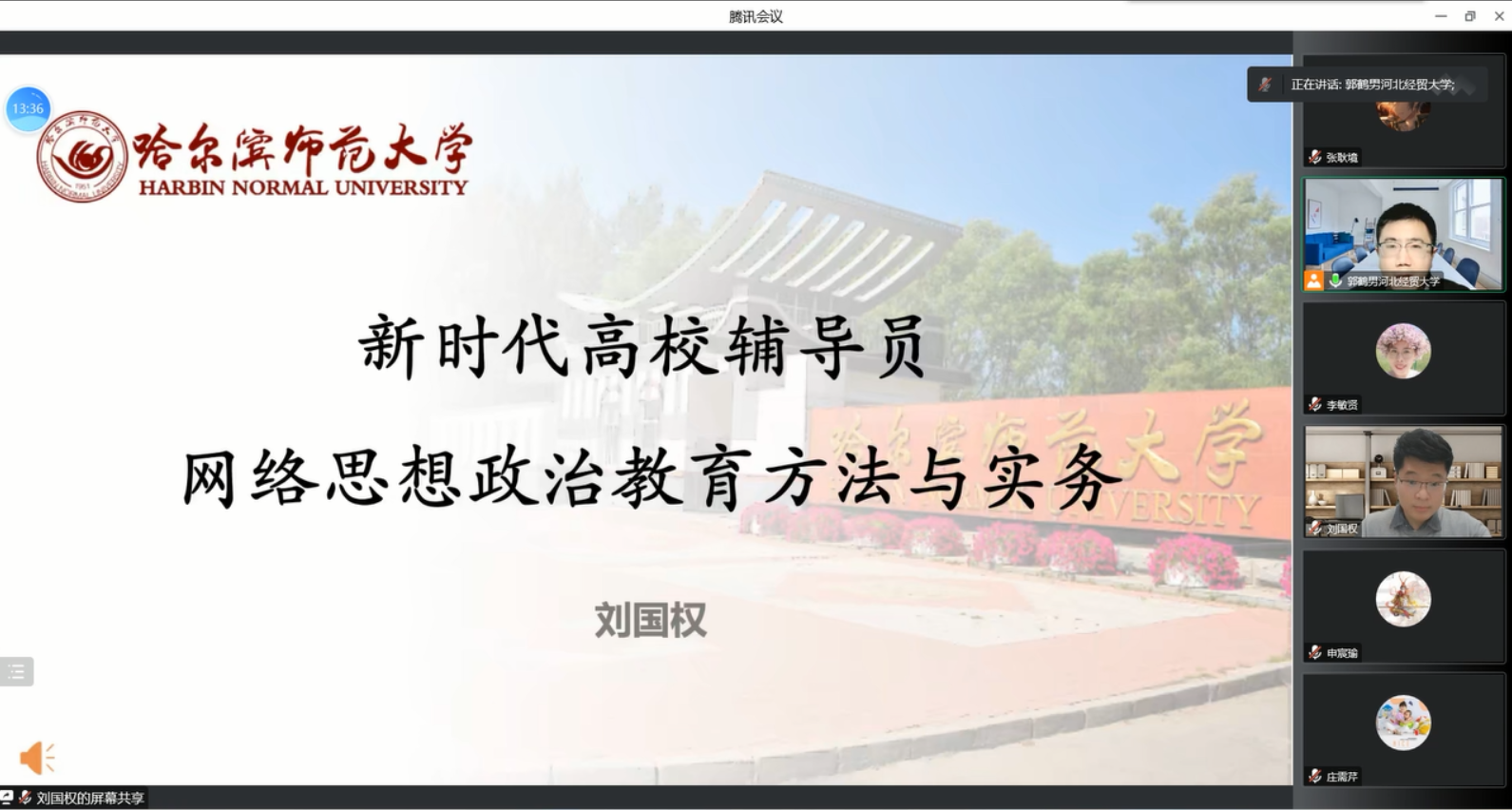 11月11日晚,永利集团3044am通过腾讯会议举办第9期云梯辅导员能力进阶工作坊,邀请2021年全国最美辅导员、第七届全国高校辅导员素质能力大赛一等奖获得者、哈尔滨师范大学马克思主义公司辅导员刘国权担任主讲嘉宾,近300名来自全国各高校的师生参加了本次工作坊。