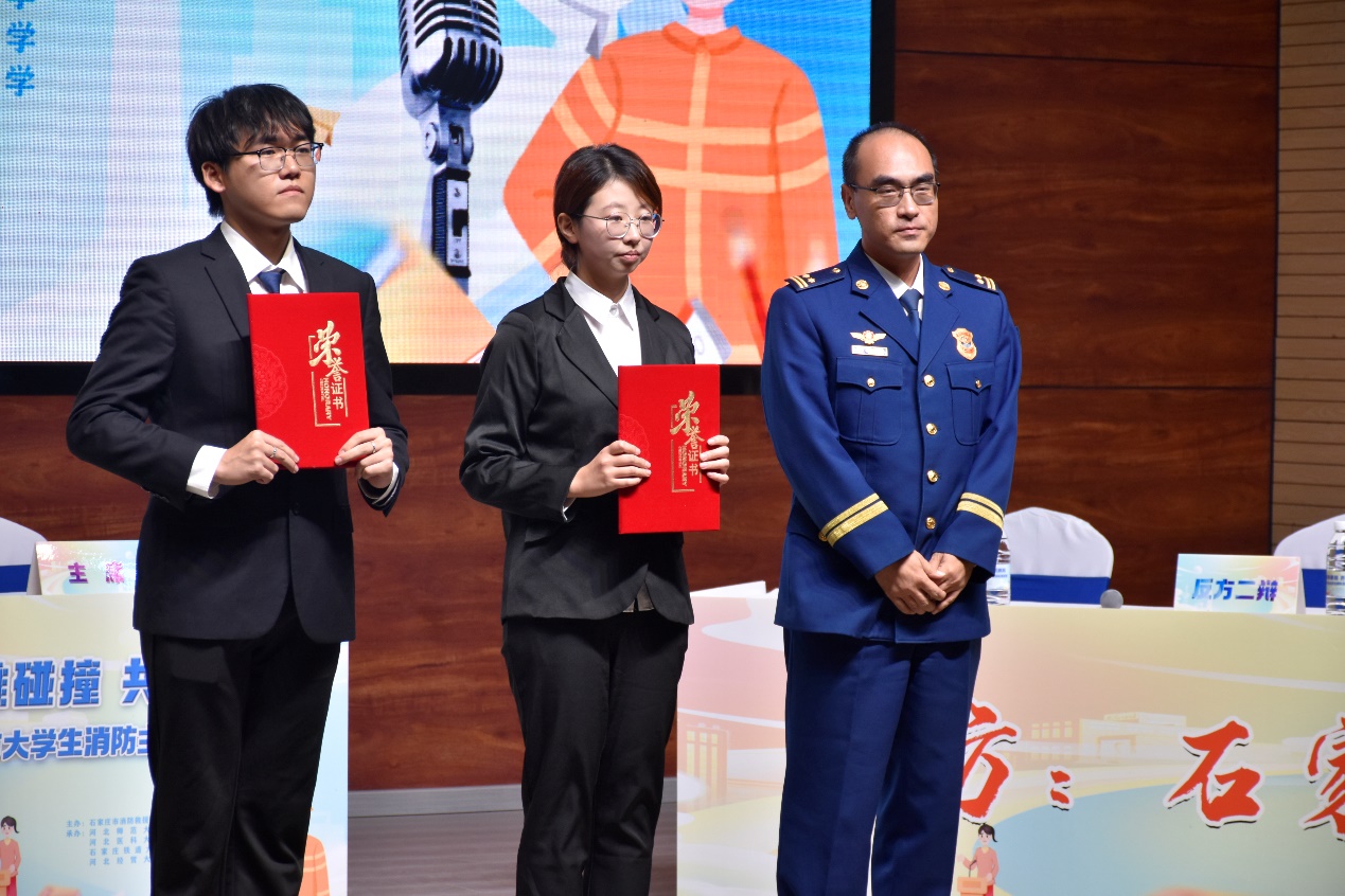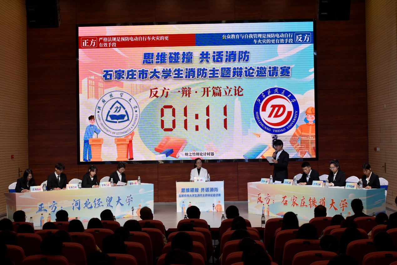 经过激烈角逐,公司闻鸣辩论队荣获优胜奖,丁利伟荣获最佳辩手称号。赛事共分为两场,河北师范大学真知辩论队、河北医科大学争鸣辩论队围绕“畅通生命通道,核心在于强化监管执法力度还是在于公众共识共治”展开辩论,永利集团3044am闻鸣辩论队、石家庄铁道大学博论辩论队围绕“严格法规还是公共教育与自我管理是预防电动自行车火灾的更有效手段”进行交锋。